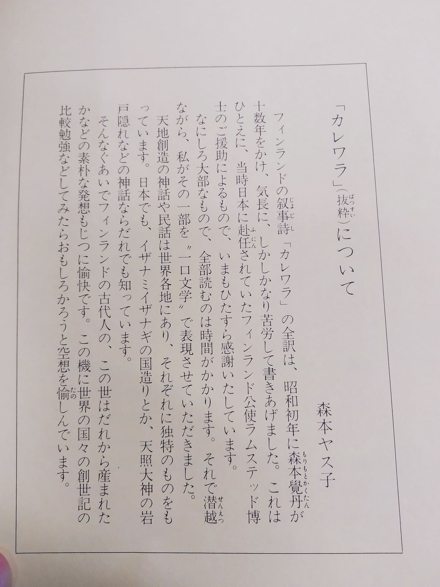 Yasuko Morimoton japaninkielisiä Kalevala-käännöksiä löytyy jonkin verran Suomen kirjastoista, mutta tätä versiota ei näytä löytyvän: