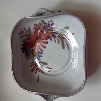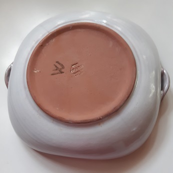 Antiikkiliike Wanhan Eliaksen julkaisemassa Arabian taiteilijoiden signeerausten luettelossa ei tällaista pelkästä W-kirjaimesta muodostuvaa signeerausta löydy. Myöskään Designmuseon haulla ei löydy tätä esinettä niitten taiteilijoiden kohdalta, joitten sukunimi alkaa W-kirjaimella (Gunnar Wahlroos, Nils Wasastjerna, Helena Wilenius ja Peter Winquist). Leiman perusteella esine kuuluu vuosien 1964 - 1971 tuotantoon, mutta Designmuseon millään haulla ei löydy kysyjän lähettämän kuvan kaltaista astiaa. Tässä kohdassa kirjastonhoitajan asiantuntemus valitettavasti päättyy, sillä mitkään kuvahautkaan eivät tuottaneet tulosta. Asiasta kannattaa kysyä antiikkiliikkeistä tai Arabialta.
