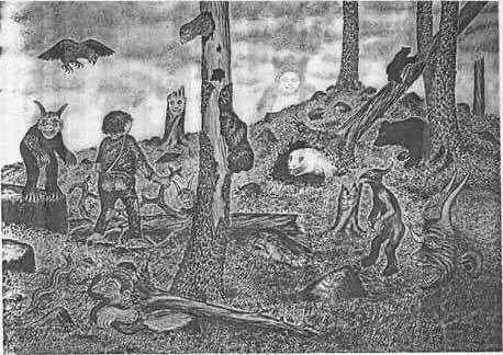 Mahtaiskohan teiltä löytyä tietoa, kenen tekemä tämä kuvan teos on (kuva liitteenä) ? Ilmeisesti kuva liittyy jotenkin lappalaiseen taiteeseen ja on kaiketi esiintynyt ainakin jossakin kirjassa 80-luvulla (tai aivan 90-luvun alussa). Kaikki kuvaan liittyvä tieto tai paikat, josta voisin tietoa löytää olisi enemmän kuin tervetullutta.