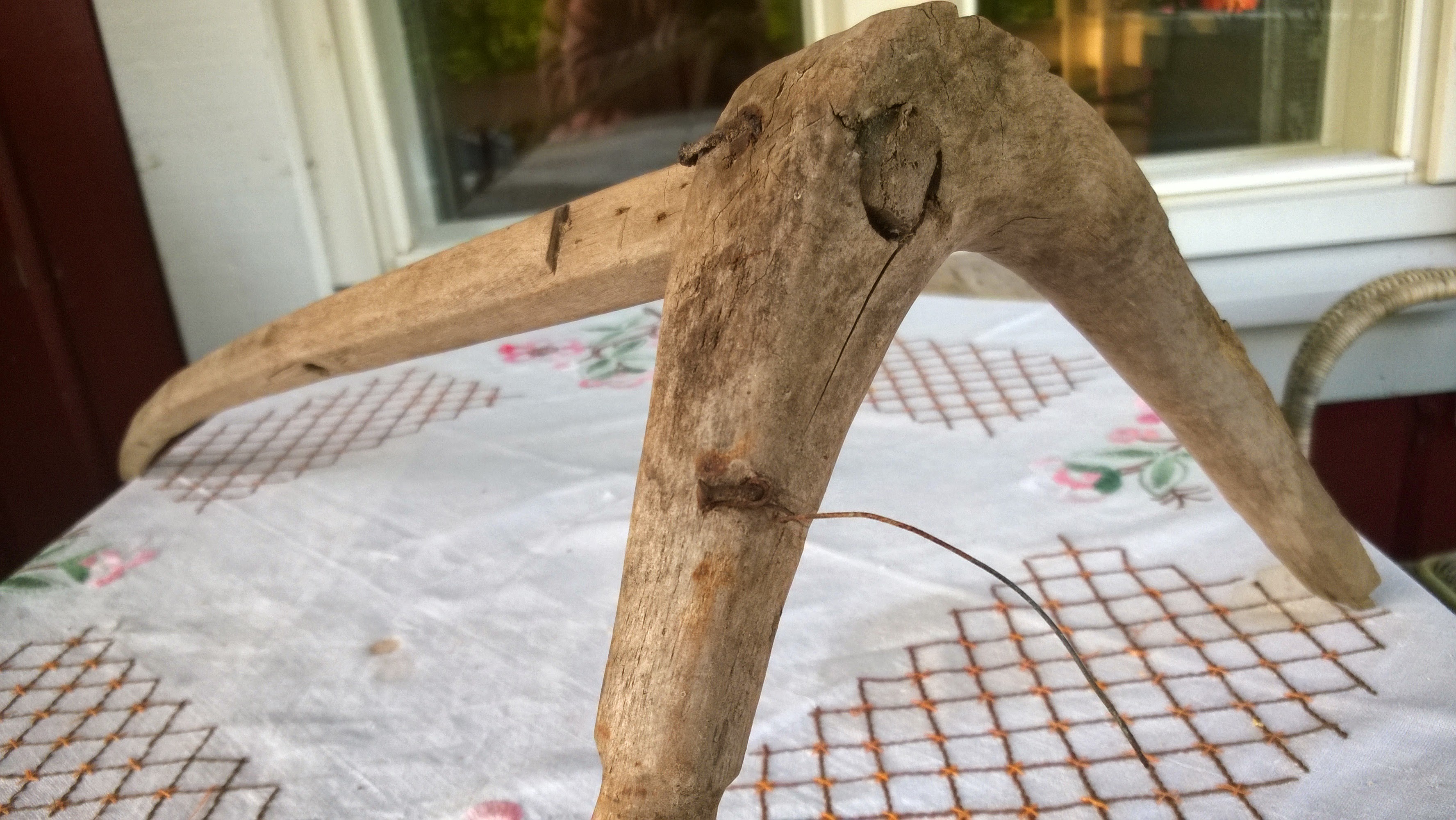 Pelastin Virroilla vuosikymmen sitten vanhan kalastusta harrastaneen setäni kesämökin autotallista oheisten kuvien mukaisen puisen esineen.