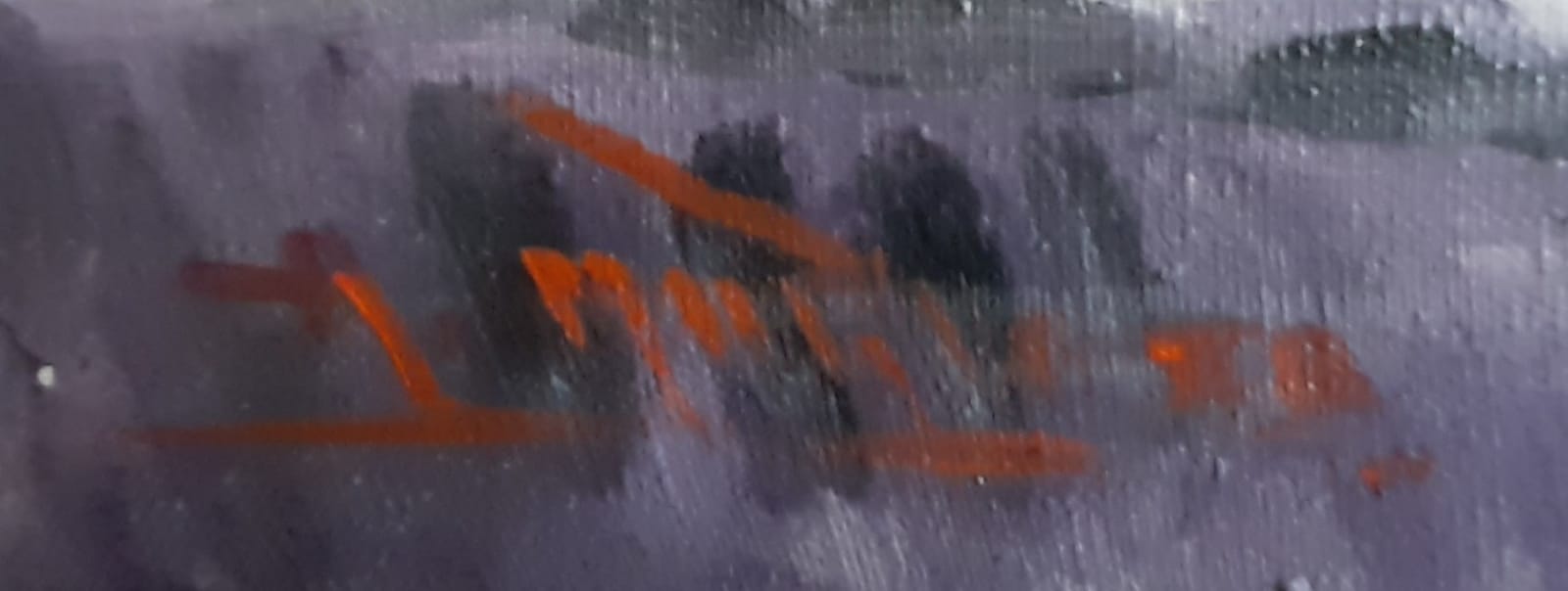 Perimme liitteenä olevassa kuvassa olevan taulun, mutta emme saa selvää signeerauksesta (liitteenä lähikuvat sign). Oletamme, että taulu on kotimaisen taiteilijan 30-40-luvulla tekemä, mutta voi olla vanhempikin (päätelty muiden samala perittyjen taulujen perusteella, niissä mm. Armas Mikolaa ja Einari Wehmasta). Osaisitko auttaa, kuka taulun on maalannut ?