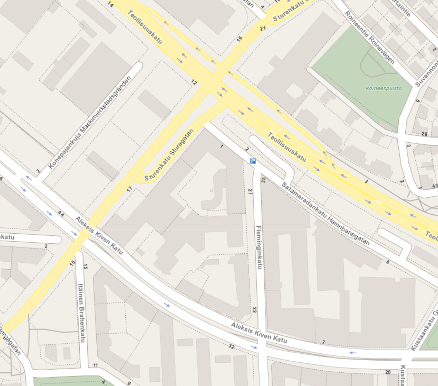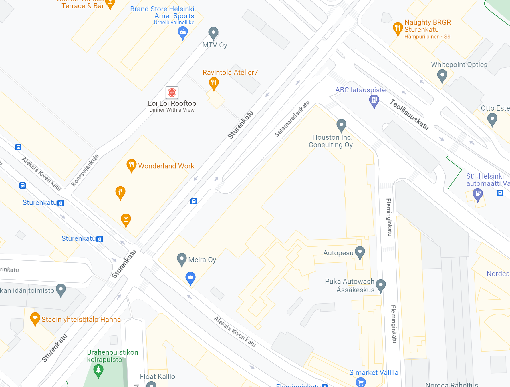 Mikä on pienen kadunpätkän nimi Helsingissä Meiran kahvipaahtimon vieressä kun osa karttapalveluista sanoo että se on sturenkatu ja osa sanoo että satamaradankatu