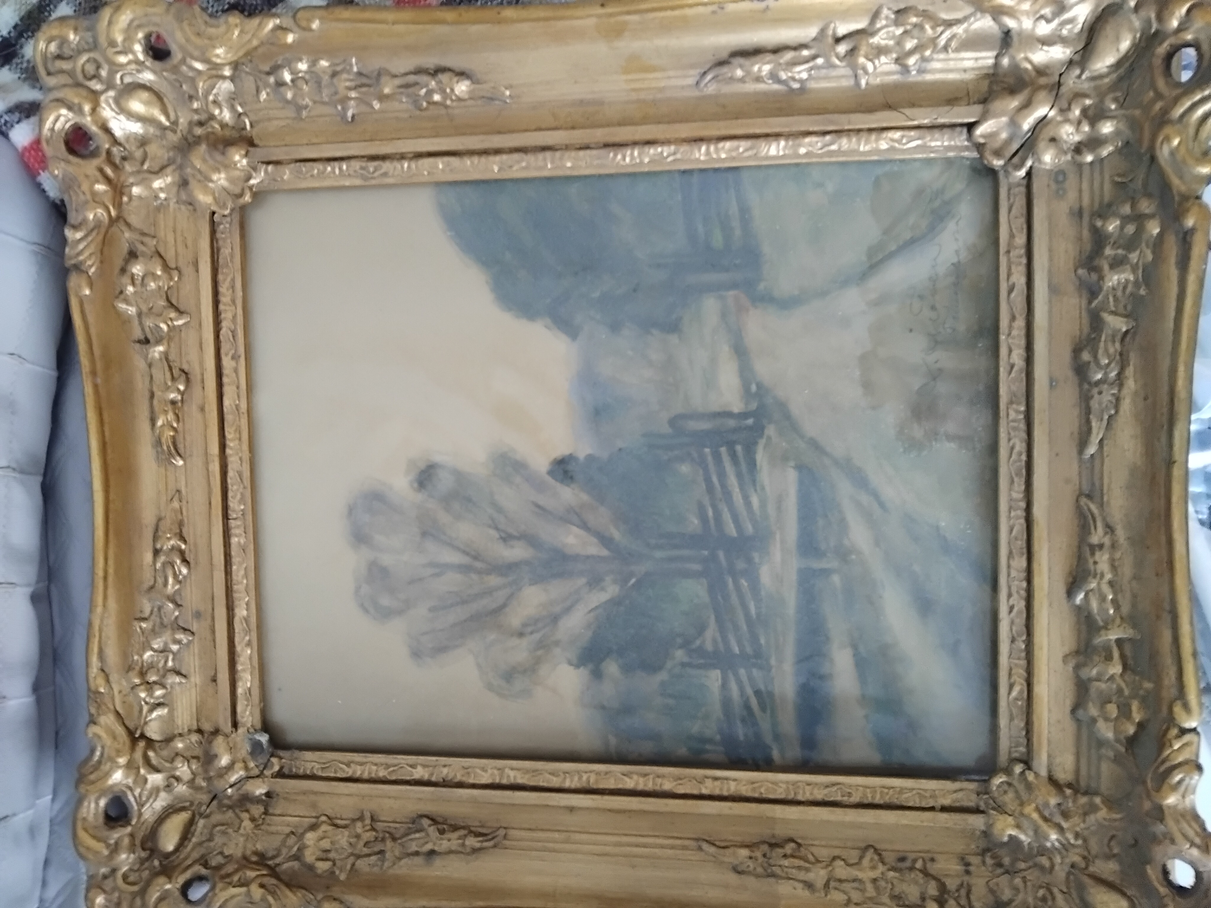 Hei, tiedättekö maalarin kun en saa selvää signeerauksesta ja onkohan tällä teoksella nimeä?
